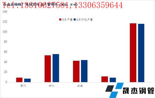 四川区域:五月四川区域无缝91视频在免费线观看钢管厂家线材实际产量53.27万吨,六月计划产量56万吨,计划产量增加2.73万吨,环比增加5.12%。其中LG5月30号开始恢复正常生产,产量有所增加。