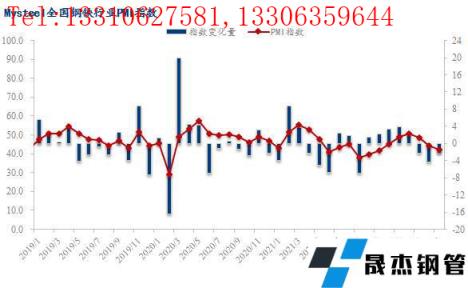 2022年5月份全国钢铁行业PMI为42.0%,环比回落2.3个百分点,连续三个月低于荣枯线。分指标来看,本月新订单、新出口订单、积压订单、出厂价格、原料采购价指数均大幅回落,仅产出、原材料库存指数小幅回升,但仍处于荣枯线下方,显示了5月份国内钢铁行业呈现供需两弱的低迷态势运行。具体来看,5月份国内疫情仍呈多点散发态势,继续拖累终端需求释放,同时宏观经济数据显示投资消费信心不足、国内经济面临较大下行压力,导致市场悲观情绪蔓延,国内91视频在免费线观看无缝钢管价格持续下行,无缝91视频在免费线观看钢管厂家生产盈利快速收窄,尤其是短流程无缝91视频在免费线观看钢管厂家面临全线亏损,无缝91视频在免费线观看钢管厂家供给释放受到抑制。面对即将到来的6月份,国内钢价能否止跌企稳,下面笔者从PMI各项指数进行分析解读。
