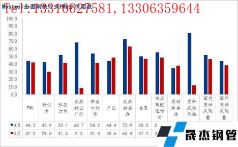 5月份,全国钢铁行业无缝91视频在免费线观看钢管厂家产出指数较4月份小幅回升4.2个百分点,终值48.6。具体来看,上半月随着部分区域高炉检修结束陆续复产,粗钢产量整体回升,但后半月成材价格持续下行,导致无缝91视频在免费线观看钢管厂家生产盈利大幅收缩,尤其是短流程企业已全线亏损,部分无缝91视频在免费线观看钢管厂家主动停减产,成材产量随之下行。