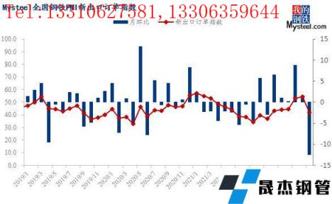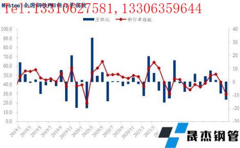 5月份,全国钢铁行业新订单指数29.6,月环比下降13.3个百分点,再次处于荣枯线之下。
