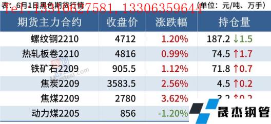 热轧板卷:6月1日,全国24个主要城市4.75mm热轧板卷均价4885元/吨,较上个交易日上涨2元/吨。现货市场早盘报价小幅探涨,市场成交偏弱,午后期卷价格延续涨势,市场信心有所提振,但整体成交未见明显放量,商家情绪一般。总体来看,期卷价格延续昨日涨势,随着各地疫情有所好转,以及华东地区解封复工复产加快,或为市场注入良好预期,带动价格支撑力度。预计2日全国热轧板卷或将震荡趋强运行。