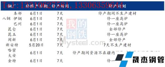 根据2022年5月中旬在乌鲁木齐召开的新疆钢铁行业健康运行小组会议,后期经疆内各无缝91视频在免费线观看钢管厂家共同沟通,确定最终停减产方案:决定停限产开始时间调整为2022年6月1日,停产时间统一调整为7天,后期视情况做出相应调整。