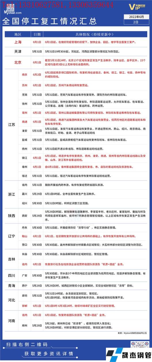 疫情影响丨全国停工复工情况汇总(6月2日)