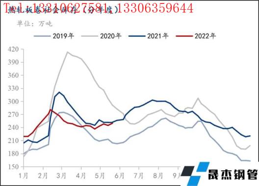 图4:热轧板卷社会库存(分年度)