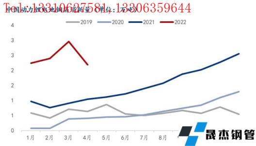 2022年前4个月中国动力锂电池产量为13GWh,同比增速超过180%,其中3月再度创历史新高,动力电池类锂电铜箔需求量接近10万吨。