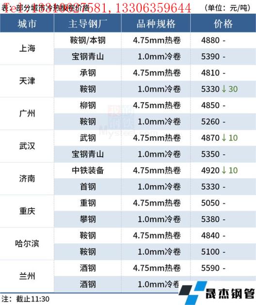 ◎天津:7日早盘冷轧市场价格下调30元/吨,1.0天铁5340元/吨;首钢5330元/吨,唐钢5300元/吨,成交一般。(单位:元/吨)