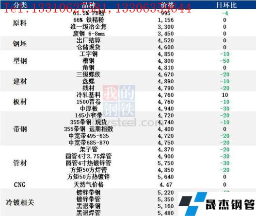 表:6月10日唐山钢市主要品种价格一览(单位:元/吨)