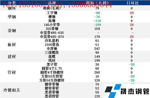 表:6月10日唐山钢市主要品种利润一览(单位:元/吨)