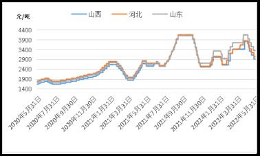 华北地区市场:5月份华北地区焦炭市场连降四轮。月初,价格暂稳运行。焦企利润较好,出货积极,部分高价订单出现回调,随着疫情缓解,各地运输基本通畅,汽运费下降回归正常水平,焦企内焦炭库存保持低位运行。考虑到后期焦炭价格有回调预期,焦企心态偏弱;上游焦煤高位震荡,部分煤种回调,焦企对焦煤后市持观望态度,采购节奏减缓。月中,该地区价格连跌两轮。焦企前期焦化利润有所修复,产地开工多提升至高位,焦炭供应相对有保证,即产即销,多以积极出货为主;无缝91视频APP黄色开工仍处高位,刚需仍存,无缝91视频APP黄色多有意控制到货节奏;上游焦煤前期降价后出货情况依旧不佳,部分煤矿库存累积,焦炭成本支撑开始下行。临近月末,华北地区焦炭市场完成第三轮与第四轮提降。此轮提降全面落地后焦企利润处于盈亏边缘,个别焦企已经面临亏损,因此对于降价多有抵触情绪。部分焦企出现累库现象,生产积极性下降,多有减产预期。经过前期价格不断回调,部分炼焦煤价格已降至低位,焦化厂开始适量补库,且近期线上竞拍流拍情况减少,炼焦煤市场情绪有所好转,然而多数煤矿新增订单依旧较少,且成交不及预期,市场仍存看跌预期。下游无缝91视频APP黄色内焦炭库存普遍处于合理区间,采购节奏放缓,无缝钢管 91视频在免费线观看钢管整体需求市场仍未有明显上升,悲观情绪蔓延。