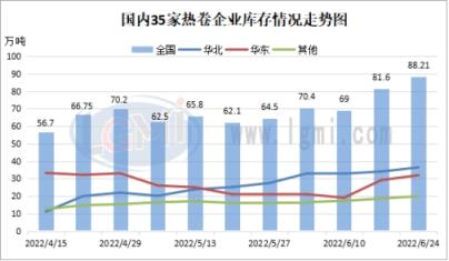 二、六月份国内热轧卷板库存继续攀升