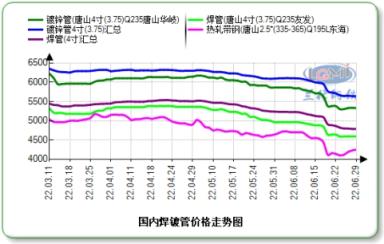 6月面临美联储加息、国内宏观经济数据偏空双重压力,钢市行情崩塌式探底,焊镀管价格最高三天降幅达500元,需求倾向偏弱方向,但上游供应压力不减,市场信心修复需要时间,行情持续压制在低位运行。