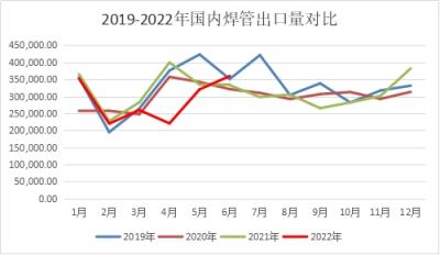图一 2019-2022年我国焊管出口量对比