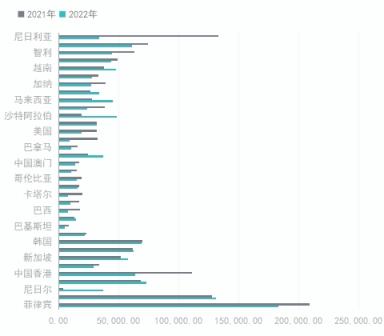 图二2021/2022年1-6月我国焊管分国别出口量