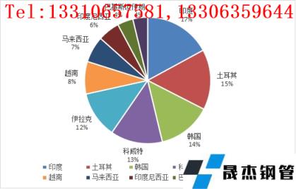 图三我国无缝管出口前十名国家占比