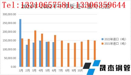 至于出口方面,据不完全统计,2022年6月份国内中板出口量约为67.94万吨,环比5月份出口量增加约8.1万余吨,与2021年同期相比出口量增加约36.59万吨左右,从图中可见,中厚板品种出口量继续增长,由于国内市场不景气,加之价格相较国外处于低谷,因此出口份额与往年同期相比有明显增加。